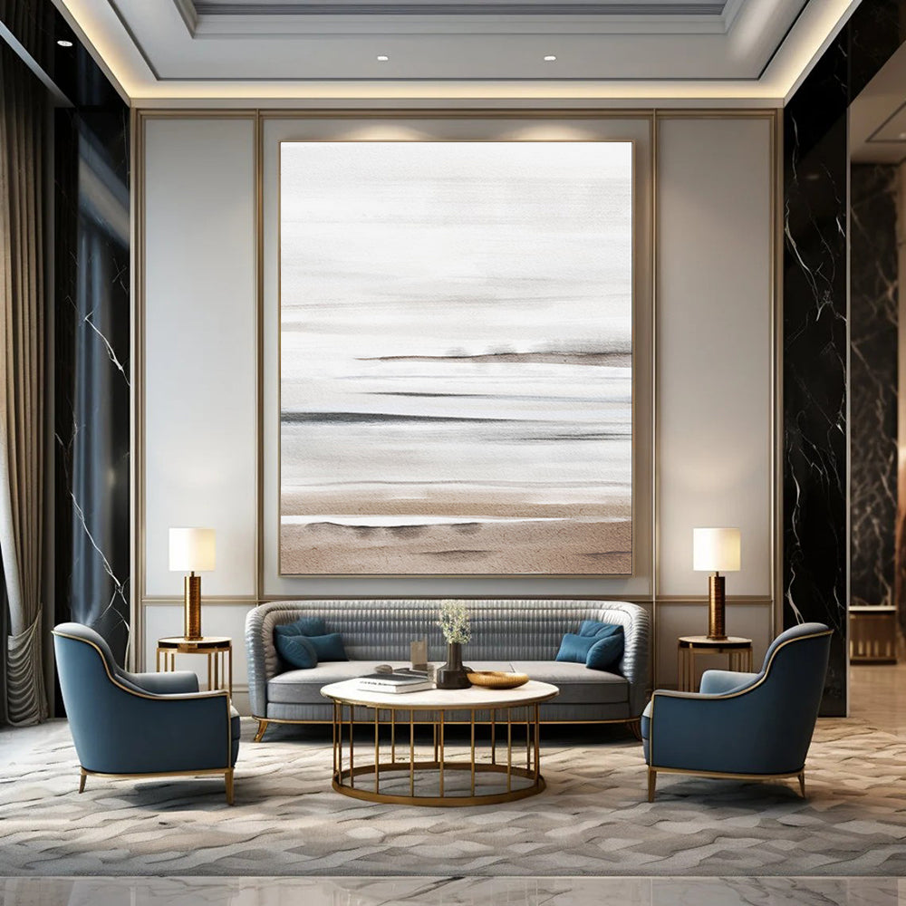 Inspired by the quiet stillness of a foggy beach at sunrise, the artist used gentle gray and white washes. They layered the colors to create the illusion of distant shorelines and calm waves, evoking the peace of early - morning coastal walks. The goal was to bring the soothing rhythm of the sea indoors. Place it in a coastal living room to channel seaside vibes or a relaxing sunroom to add a touch of tranquil charm. It’s a work that transports you to that hushed beach, letting the sound of quiet waves wash over your space. Packaging: Each artwork is professionally rolled and secured in a durable hard-shell tube for safe transit with a 2–3 inch white border around the painting for easy stretching or framing at your local shop. Delivery Timeline: Expect your painting within 7–12 business days including 3–5 days for handcrafting by our artists and 5–7 days for worldwide delivery via UPS or FedEx with a tracking number provided immediately upon shipping.