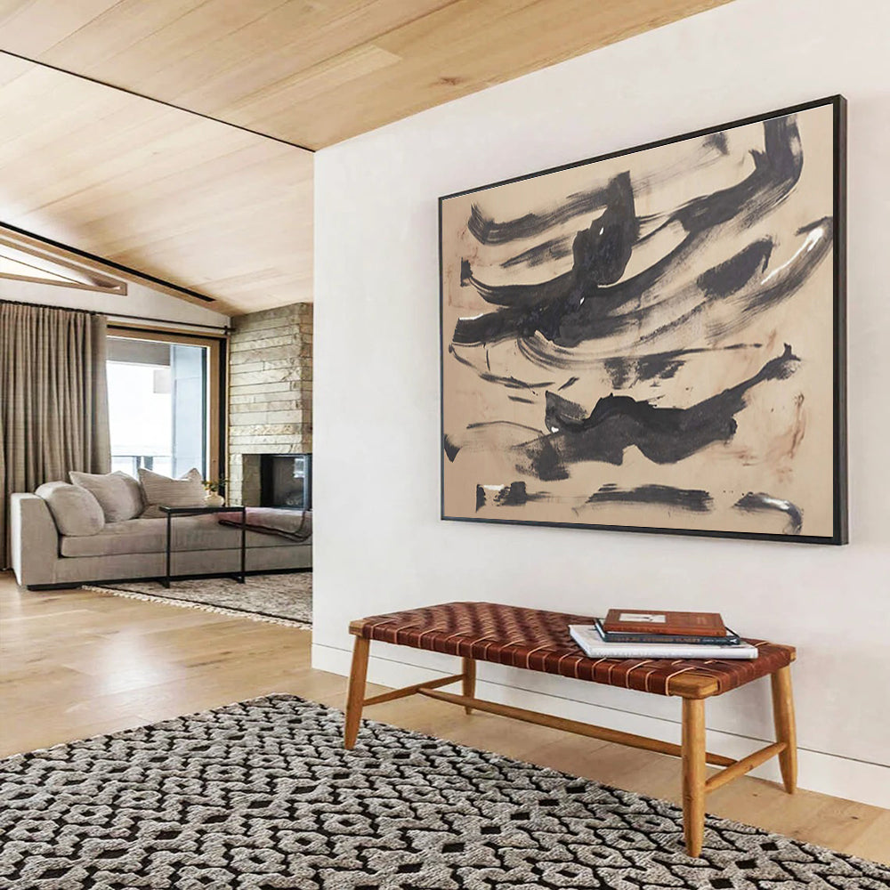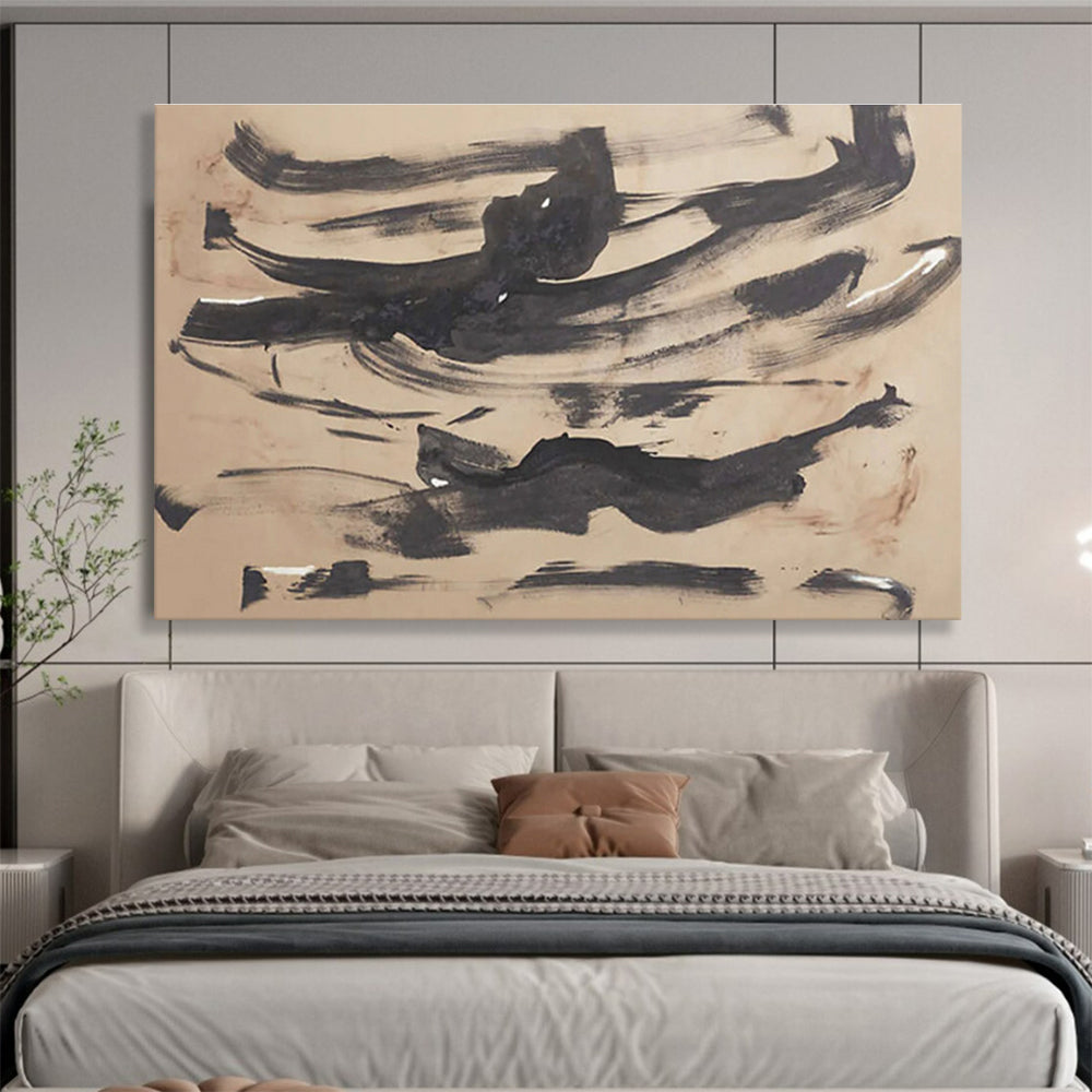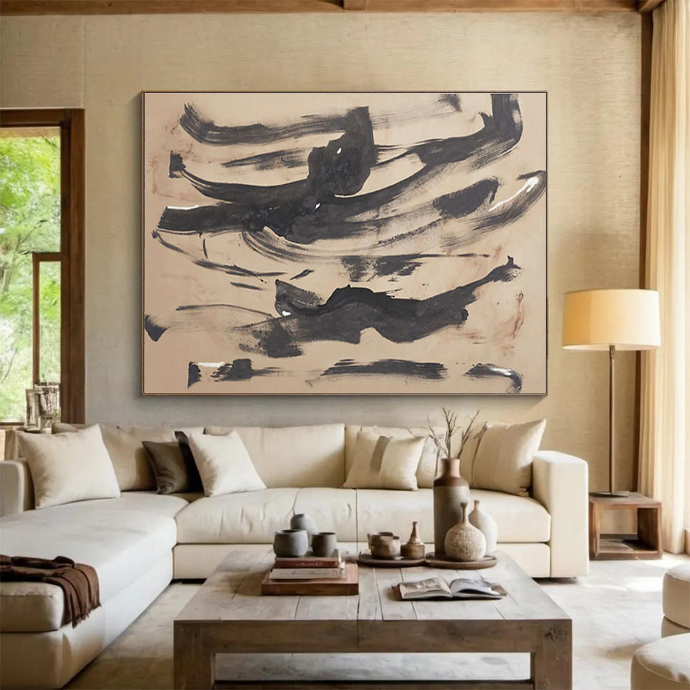 Inspired by traditional ink painting, the artist used bold black strokes on a neutral background to create a dynamic, abstract piece. They aimed to capture the fluidity and expressiveness of ink. Perfect for a study, adding an artistic touch, or a minimalist home, showcasing contemporary ink - inspired art. While painting, they focused on the movement of the strokes and the contrast with the background. It's a celebration of fluidity and expression, inviting viewers to feel the energy of the ink.