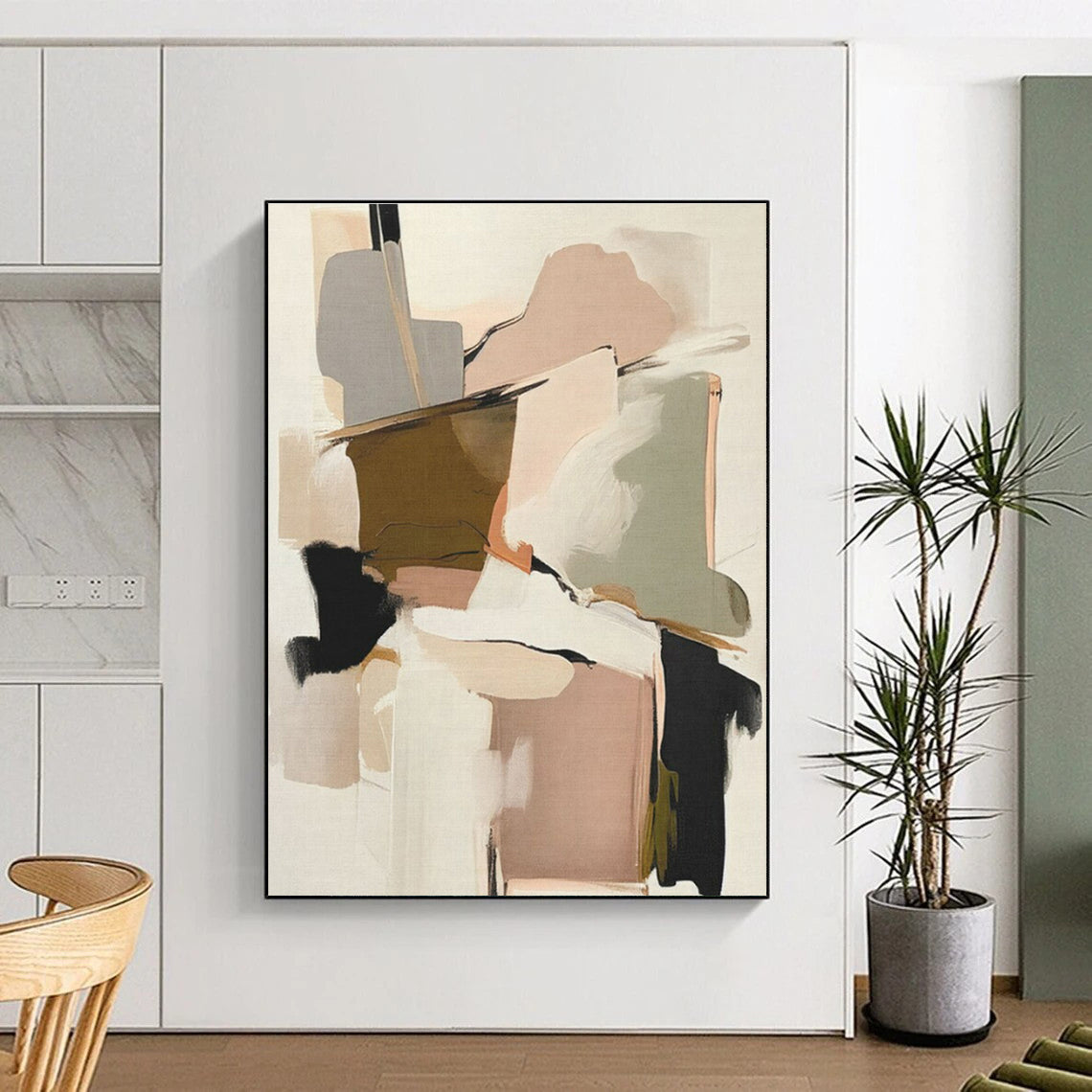 Inspired by the calming repetition of shapes, the artist created a soft, textured collage on a large canvas. They used muted tones and gentle brushstrokes to build a sense of tranquility. In a minimalist living room, it adds a sophisticated, understated elegance—perfect for quiet evenings. In a serene spa, it enhances the relaxing atmosphere, helping guests unwind. The artist refined the shape repetition and texture blending, ensuring the large size and soft design make the space feel like a peaceful haven. Packaging: Each artwork is professionally rolled and secured in a durable hard-shell tube for safe transit with a 2–3 inch white border around the painting for easy stretching or framing at your local shop. Delivery Timeline: Expect your painting within 7–12 business days including 3–5 days for handcrafting by our artists and 5–7 days for worldwide delivery via UPS or FedEx with a tracking number provided immediately upon shipping.