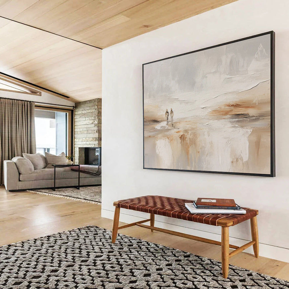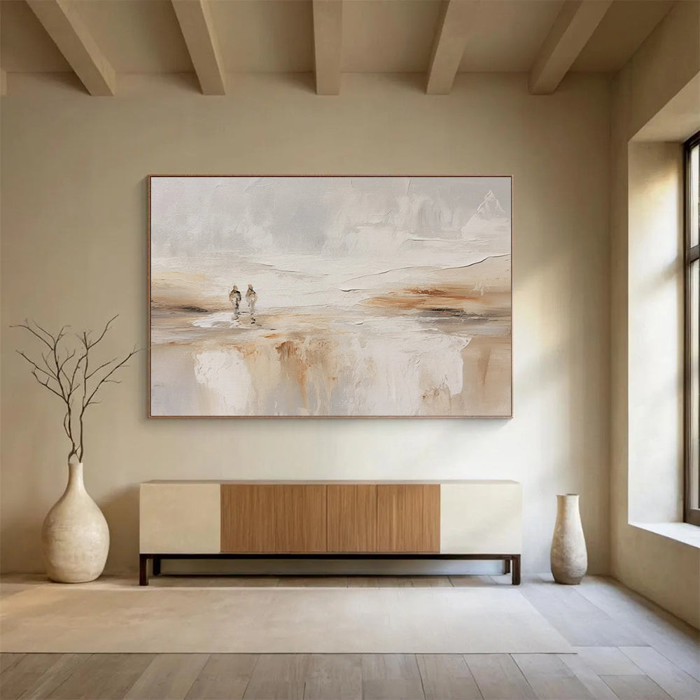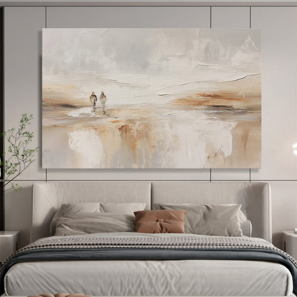 Echoing the serene simplicity of Helen Frankenthaler’s abstract landscapes, this painting captures a quiet moment of two people walking on a beach. The artist was reflecting on the beauty of shared moments, watching a couple stroll along the shore at dawn, and translated that peace into soft, muted tones. The acrylics were applied thinly, creating a sense of airiness and light. It’s perfect for a beach house bedroom, where it evokes the calm of early morning walks by the sea. In a wedding venue’s reception area, it symbolizes the journey of love, adding a touch of romance. This painting is a reminder of life’s precious moments. Let it into your space, and let its gentle beauty remind you to slow down, to appreciate the simple joys, and to create memories that will last a lifetime.