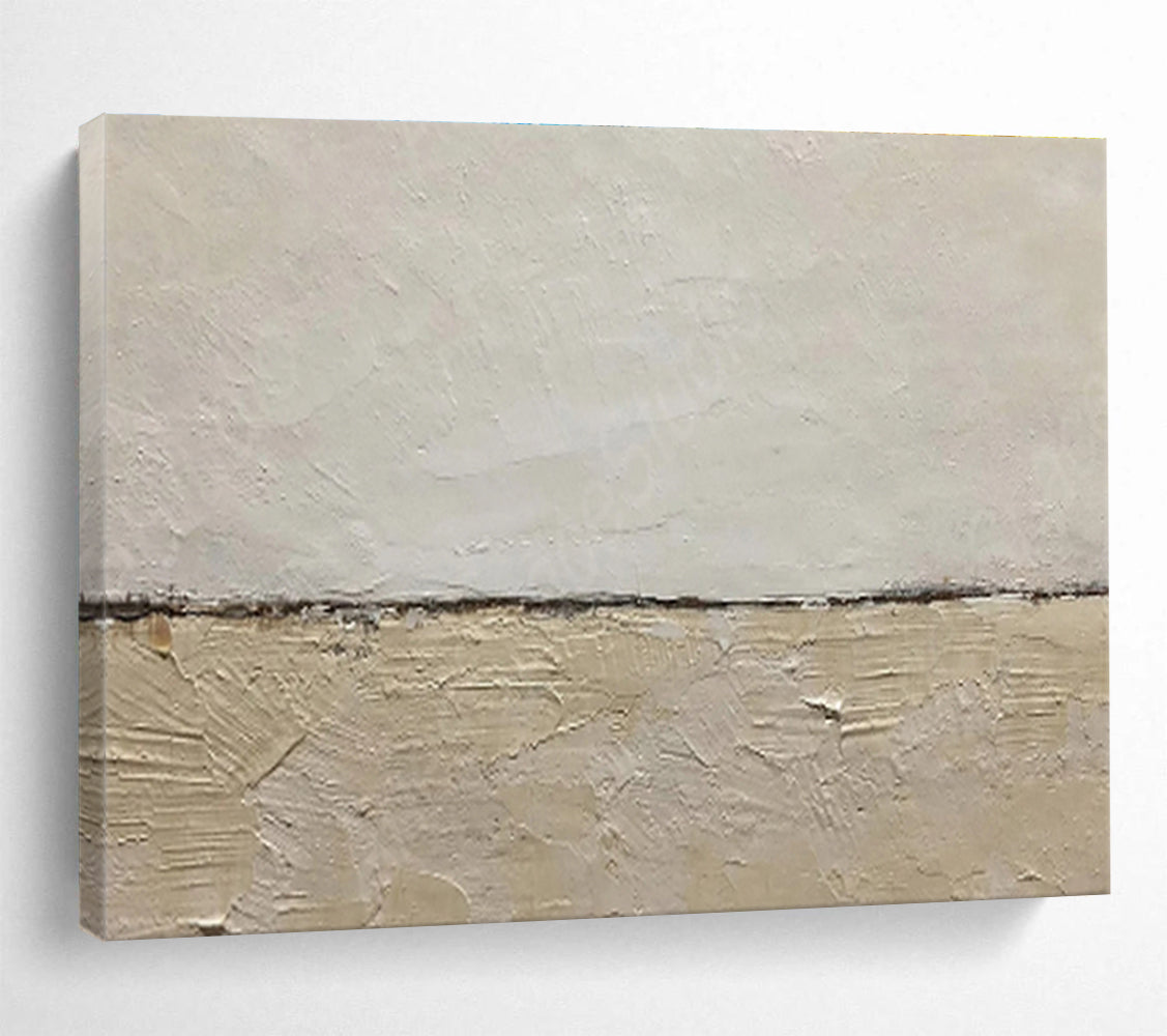While in a minimalist art gallery, the artist wanted to “paint that clean, understated simplicity”. Using subtle beige and white tones with a textured finish, they created a refined, modern piece. Ideal for a living room, adding a touch of contemporary calm, or a home office, enhancing focus and clarity. It’s a minimalist gallery’s simplicity, ready to elevate your space.