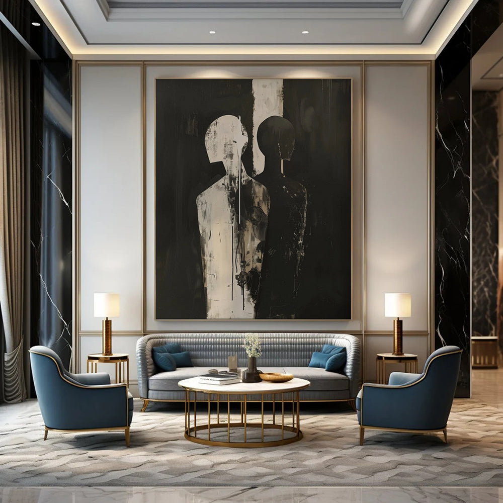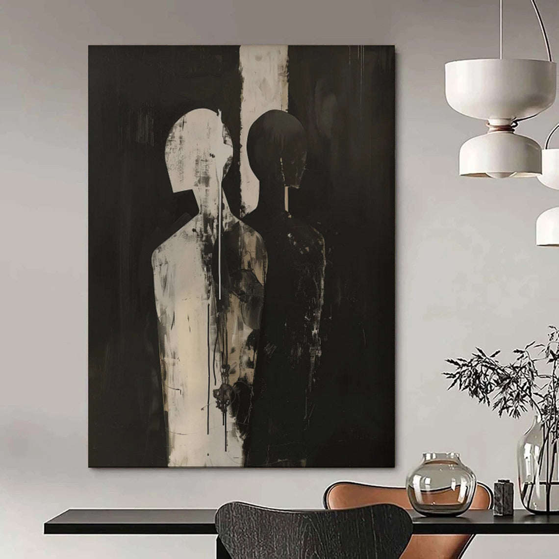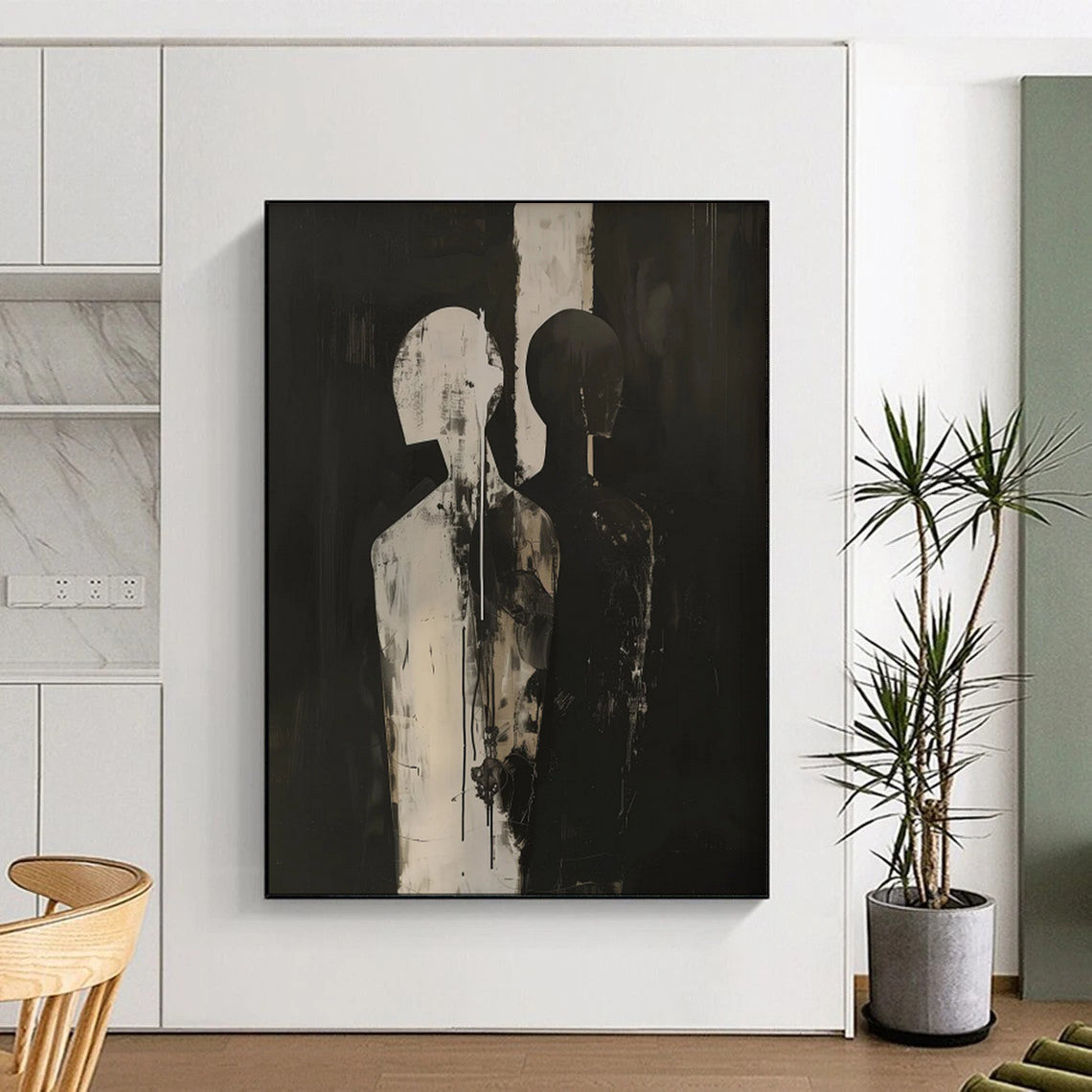 The artist is intrigued by human connections and how people can be both separate and intertwined. They played with black and white, painting two figures that seem to share a space, their forms blending and separating. This piece is about the complexity of relationships, the way we overlap and stand apart. It suits a modern art lounge to spark conversations or a thought - provoking study to inspire deep thinking. Every stroke is the artist’s exploration of human connections, ready to make you ponder the ties that bind us. Packaging: Each artwork is professionally rolled and secured in a durable hard-shell tube for safe transit with a 2–3 inch white border around the painting for easy stretching or framing at your local shop. Delivery Timeline: Expect your painting within 7–12 business days including 3–5 days for handcrafting by our artists and 5–7 days for worldwide delivery via UPS or FedEx with a tracking number provided immediately upon shipping.