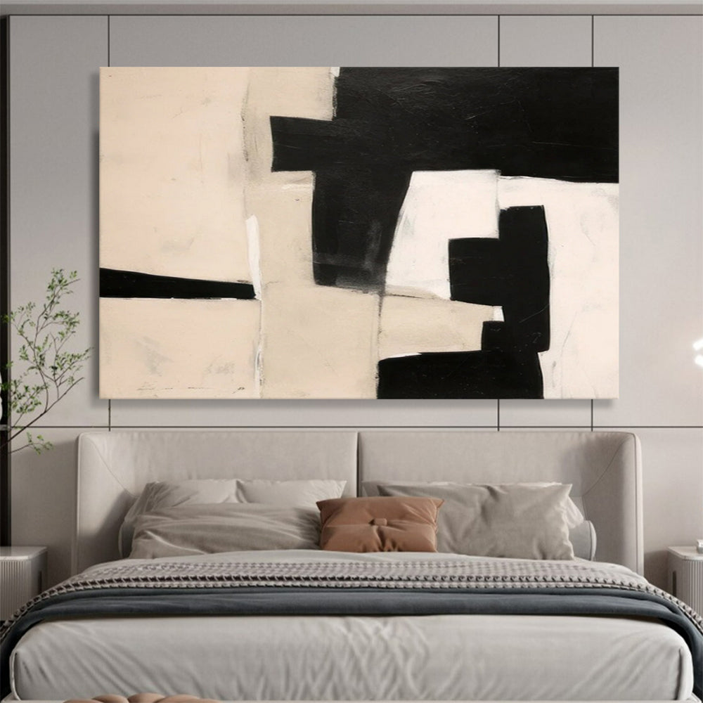 This artwork, rooted in the minimalist and geometric traditions reminiscent of Piet Mondrian’s style, plays with the stark contrast of black and neutral tones. The artist embarked on a journey of simplification, stripping away excess to focus on the pure forms and negative spaces. As they layered the acrylics, each stroke was a deliberate choice to create a sense of balance and tension. Picture this in a modern corporate boardroom, where its clean lines and sophisticated palette complement the sleek, professional atmosphere, inspiring clear - headed decision - making. Or, hang it in a minimalist home library, where it becomes a silent companion to quiet reading, adding a touch of intellectual elegance. This piece isn’t just a painting; it’s a statement of refined taste. Bring it into your space and let its understated power transform the room, making every glance a moment of appreciation for the beauty of simplicity.