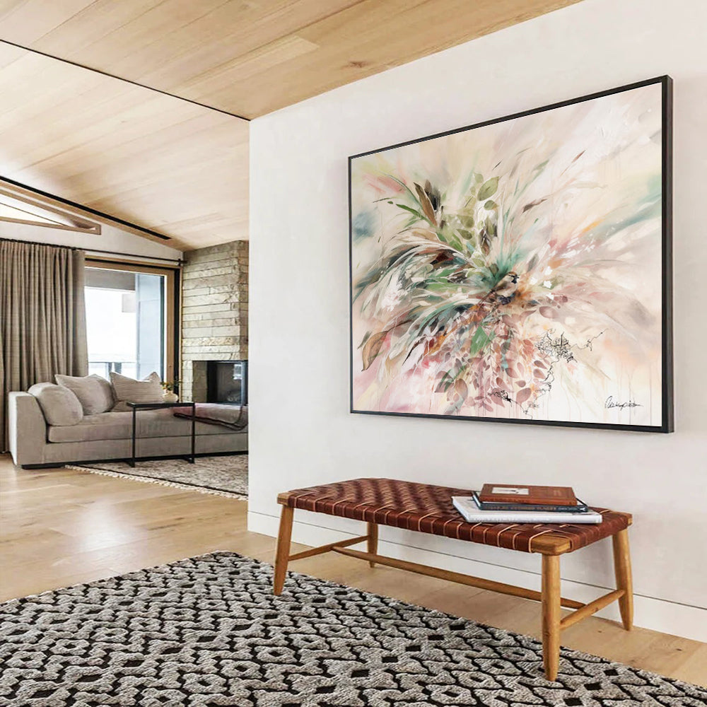 While hiking in a quiet, untouched forest, the artist stumbled upon a wild bouquet of grasses and flowers, their colors muted yet harmonious, a perfect snapshot of nature’s understated beauty. They wanted to capture that raw, organic charm, using soft greens, earthy browns, and subtle pinks. The loose, expressive brushstrokes let the “bouquet” feel alive, as if it was just picked. This piece is ideal for a rustic - styled dining room, where it can complement wooden furniture and bring the forest inside, or a cozy reading corner, adding a touch of nature’s calm to your literary escapes. Let it bring the serenity of a hidden forest glade into your home.