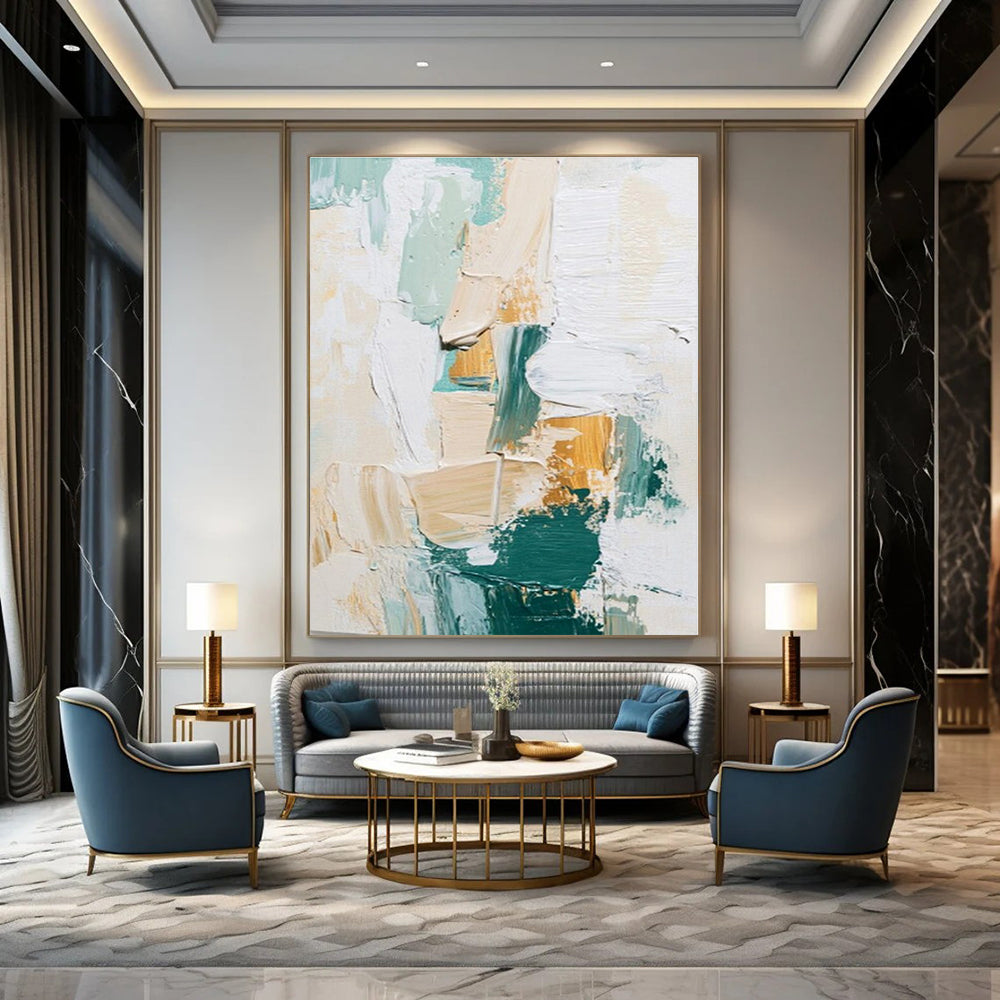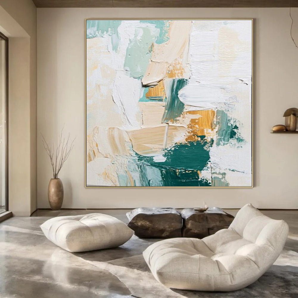 Inspired by the soft, airy tones of Scandinavian design and the warmth of gold accents, the artist created this gentle, yet stylish piece. The pastel greens, blues, and creams blend with subtle gold touches, creating a calming, inviting atmosphere. It’s perfect for a Scandinavian - style bedroom, promoting restful sleep, or a light - filled café, adding a touch of delicate beauty to the space. The artist used soft brushstrokes and gentle layering to achieve the pastel hues, and added gold in small, strategic areas to create a bit of sparkle. It’s a painting that feels like a breath of fresh air, ideal for spaces that value tranquility and understated charm. Packaging: Each artwork is professionally rolled and secured in a durable hard-shell tube for safe transit with a 2–3 inch white border around the painting for easy stretching or framing at your local shop. Delivery Timeline: Expect your painting within 7–12 business days including 3–5 days for handcrafting by our artists and 5–7 days for worldwide delivery via UPS or FedEx with a tracking number provided immediately upon shipping.