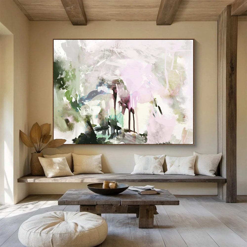 Drawing from the soft, dreamy palettes of Helen Frankenthaler, this pastel - hued abstract fusion is a dance of light colors. The artist was inspired by a walk through a spring garden, where the gentle hues of blooming flowers filled the air. They layered thin acrylic washes, letting the colors blend and create a hazy, ethereal atmosphere. It’s perfect for a cozy bedroom, where its calming tones can lull you into peaceful sleep, or a chic boutique dressing room, adding a touch of artistic elegance to the space. This painting is a breath of fresh, floral air. Bring it into your home, and let the pastel hues transform your space into a serene sanctuary, making every day feel like a gentle spring morning.