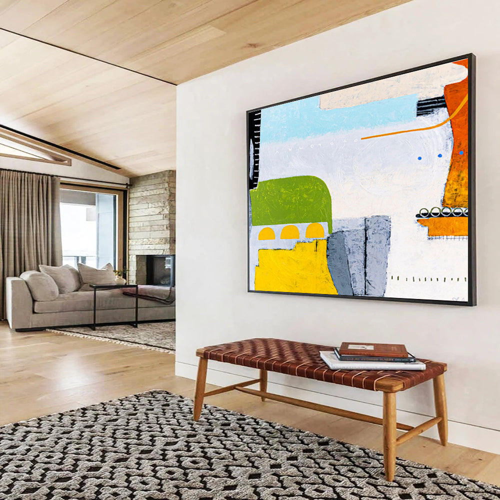 The artist had a dream one night filled with soft, floating geometric shapes in gentle pastel colors. Wanting to bring that dreamy vision to life, they used a palette of muted yellows, greens, blues, and oranges. They applied acrylics in thin, layered strokes, creating a delicate, almost ethereal geometric composition. The result is a piece that feels both modern and whimsical. This painting is ideal for a serene bedroom, where it can add a touch of gentle color and abstract beauty to your sleep space, or a light - filled yoga studio, enhancing the calming atmosphere and inspiring mindfulness. Let it transport you to a dreamy, pastel - colored world every time you look at it.
