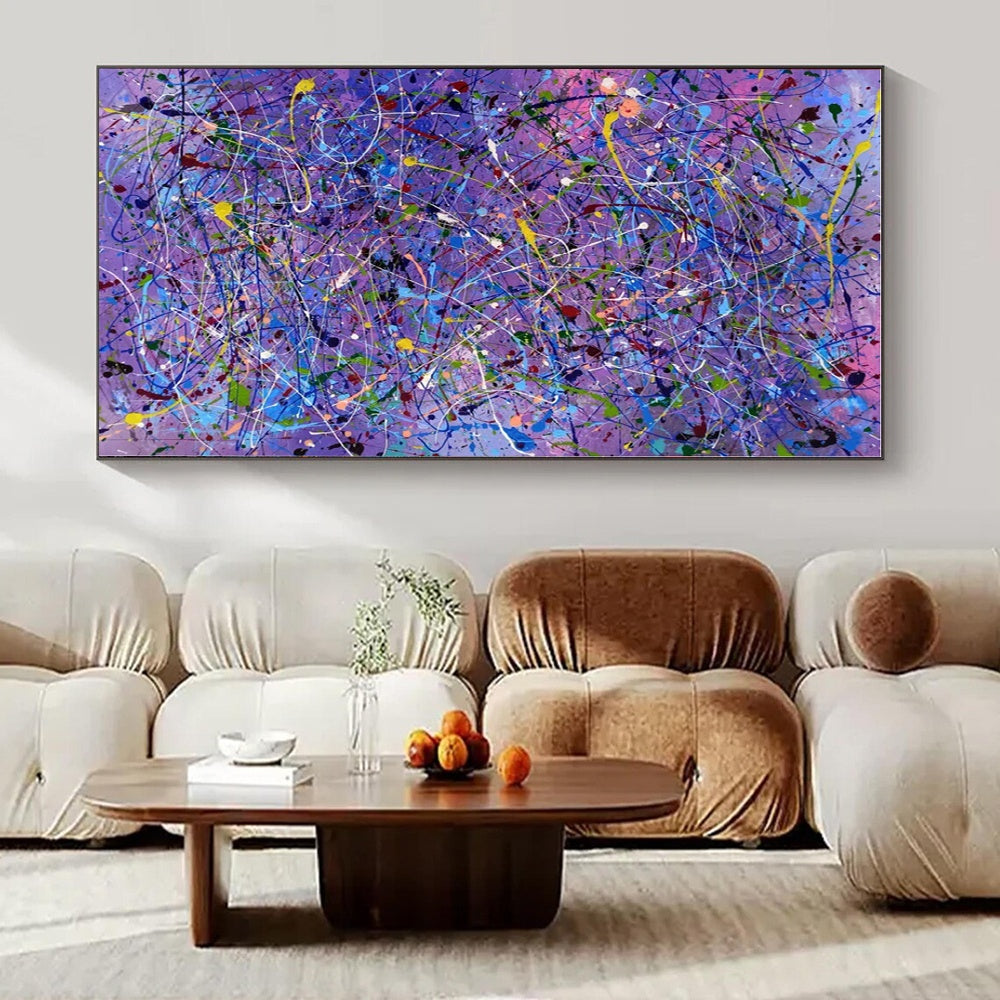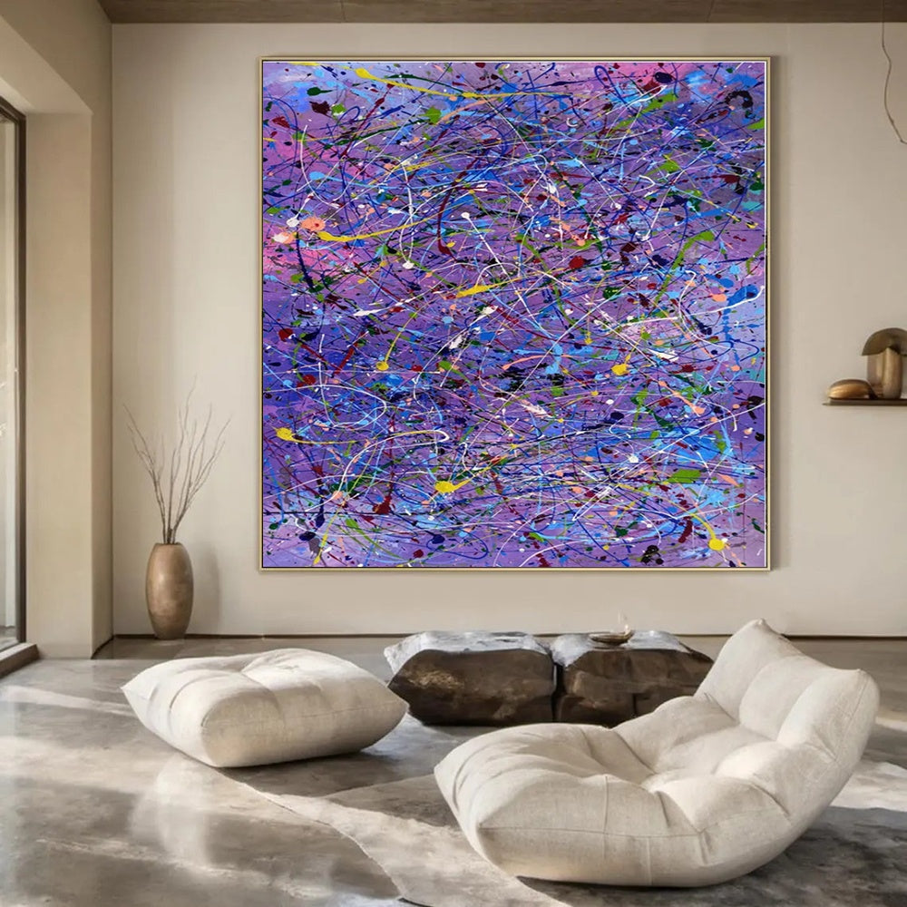 Inspired by the vibrant energy of a purple - hued night sky, the artist went all - in on color, dripping and splattering a spectrum of paints over a purple base. They wanted to create a sense of wild, creative freedom, like the way stars seem to scatter across the sky. It’s ideal for an eclectic living room, adding a burst of artistic flair, or a creative boutique, where its energetic colors can attract customers. The creation was a free - flowing process, with the artist moving around the canvas, letting the paints guide their movements. Each splatter is a moment of creative abandon, making this painting a lively, eye - catching addition to any space. Packaging: Each artwork is professionally rolled and secured in a durable hard-shell tube for safe transit with a 2–3 inch white border around the painting for easy stretching or framing at your local shop. Delivery Timeline: Expect your painting within 7–12 business days including 3–5 days for handcrafting by our artists and 5–7 days for worldwide delivery via UPS or FedEx with a tracking number provided immediately upon shipping.