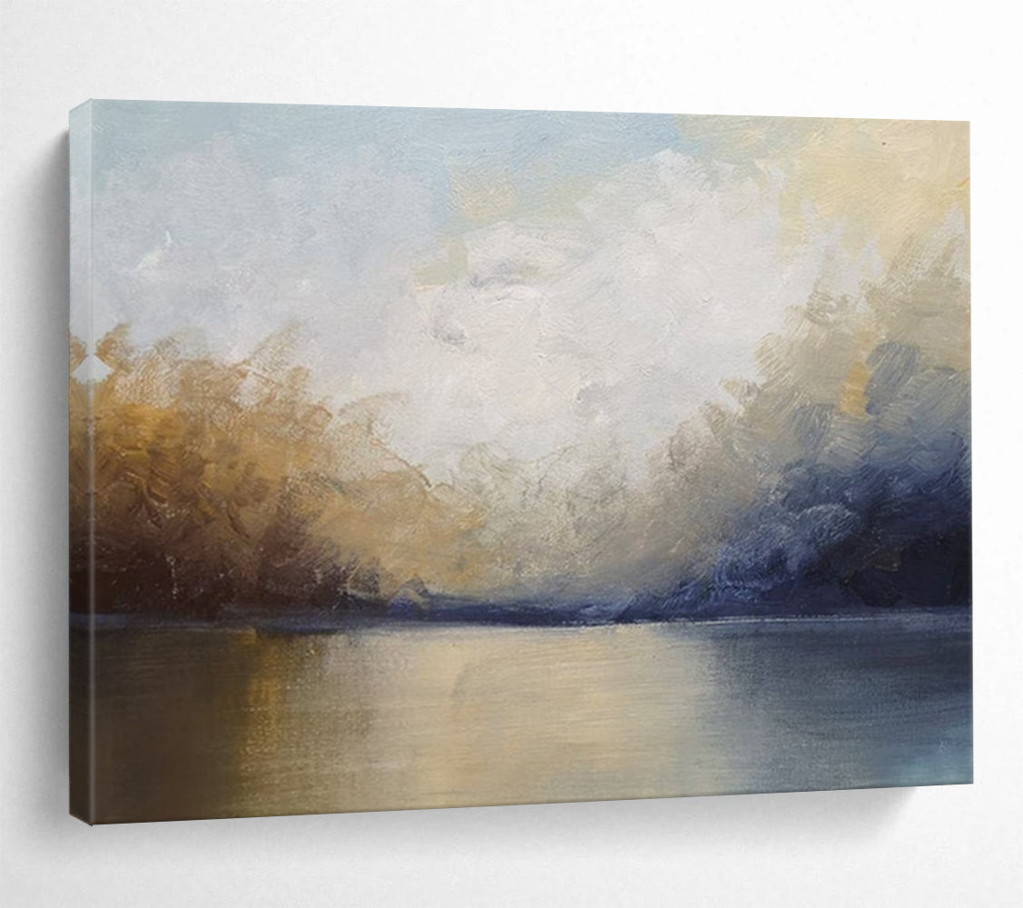 Soft - Toned Lake and Sky Reflection Abstract acrylic painting DLZ041