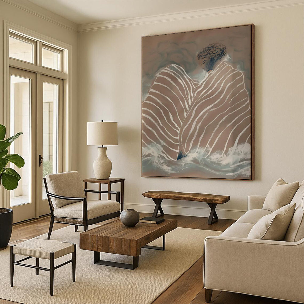 Striped Figure in Waves Abstract, Ideal for Serene Bathroom & Spiritual Meditation Space LargeART2029
