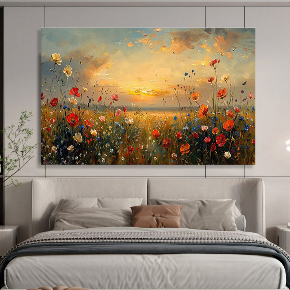 Watching a sunset over a flower field, the artist painted warm oranges, pinks, and purples. They wanted to create a “dreamy glow,” using soft strokes. Perfect for a dreamy nursery to soothe little ones or a romantic restaurant to set the mood. This painting is a sunset hug, each color a moment of pure magic. Packaging: Each artwork is professionally rolled and secured in a durable hard-shell tube for safe transit with a 2–3 inch white border around the painting for easy stretching or framing at your local shop. Delivery Timeline: Expect your painting within 7–12 business days including 3–5 days for handcrafting by our artists and 5–7 days for worldwide delivery via UPS or FedEx with a tracking number provided immediately upon shipping.