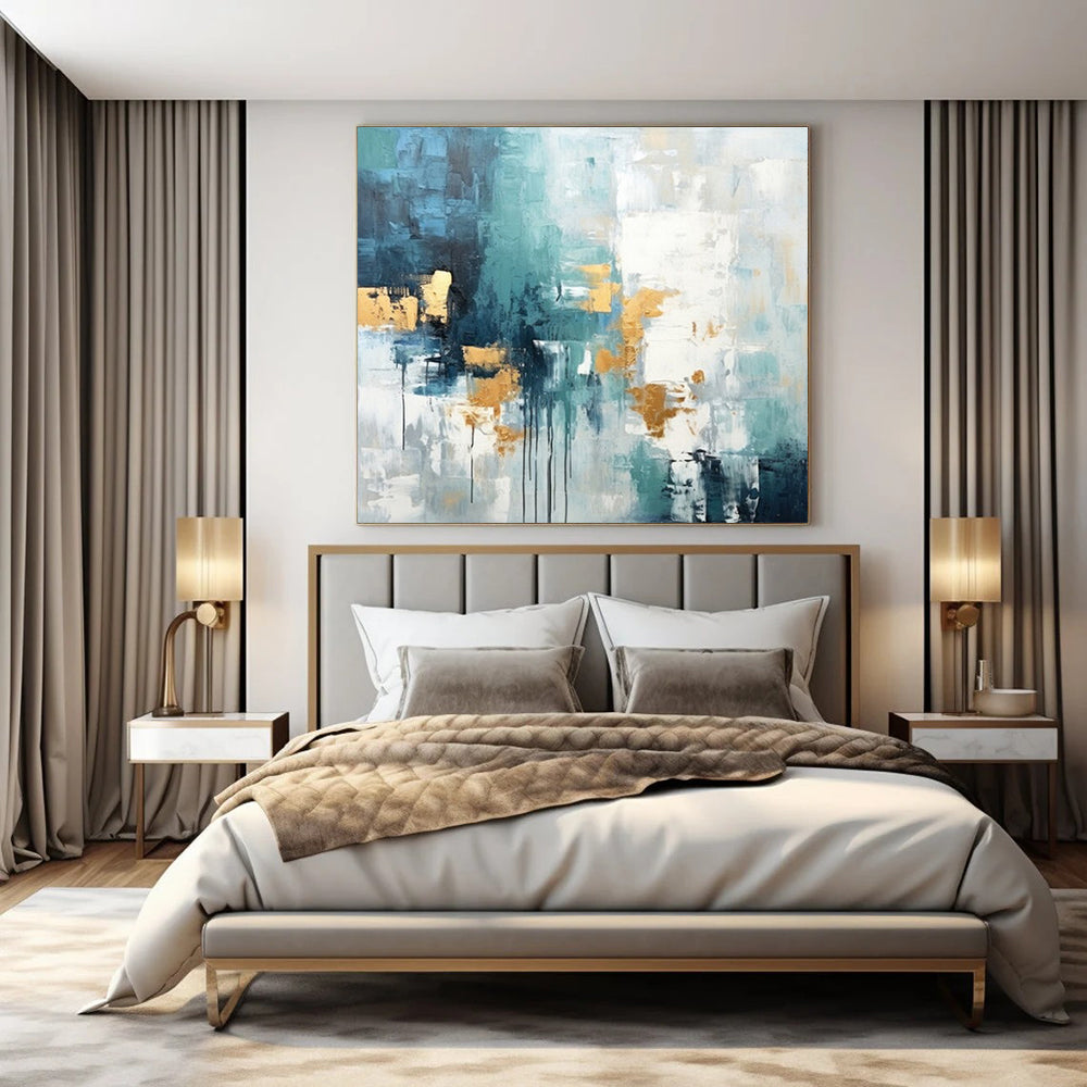 The artist sought to combine the calm of teal with the energy of gold. They let teal paint drip, then added gold accents, creating a dynamic yet soothing scene. Imagining a spa - like creativity space, they worked to balance relaxation and inspiration. Hang it in a spa to enhance the tranquil atmosphere or in a creative studio to spark innovative ideas. Packaging: Each artwork is professionally rolled and secured in a durable hard-shell tube for safe transit with a 2–3 inch white border around the painting for easy stretching or framing at your local shop. Delivery Timeline: Expect your painting within 7–12 business days including 3–5 days for handcrafting by our artists and 5–7 days for worldwide delivery via UPS or FedEx with a tracking number provided immediately upon shipping.