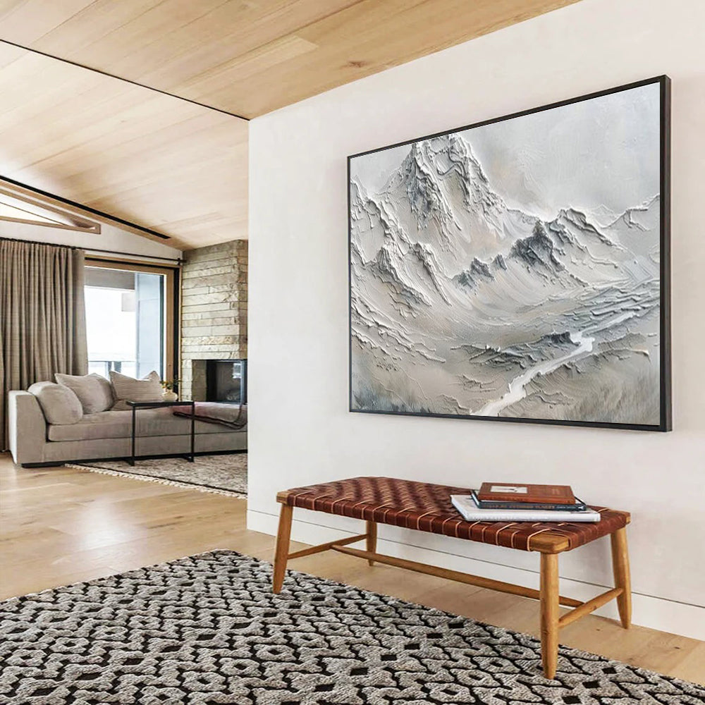 The artist admired the stark beauty of a snowy mountain range, aiming to “capture that minimalist, mountainous serenity”. Using textured white and gray brushstrokes, they created a refined, tranquil piece. Perfect for a study, adding a touch of quiet contemplation, or a bedroom, creating a dreamy, winter - like vibe. It’s a snowy mountain’s serenity, ready to soothe your space.