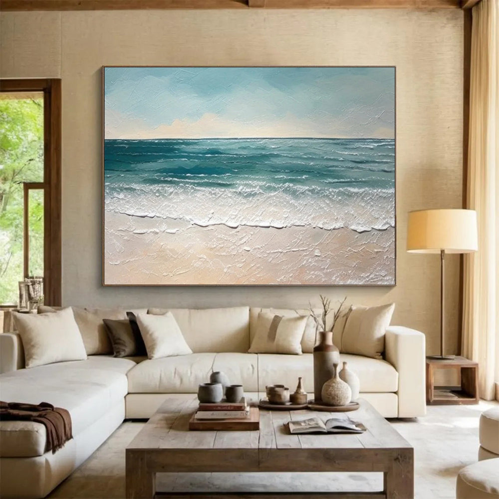 Drawing from the impressionistic seascapes of Claude Monet, the artist used thick acrylics to capture the texture of waves. Spending time by the ocean, they recreated the soothing rhythm of the sea. Ideal for a beach house bedroom or a coastal - themed living room. Let this painting bring the sound of waves into your home. A must - have for ocean lovers.