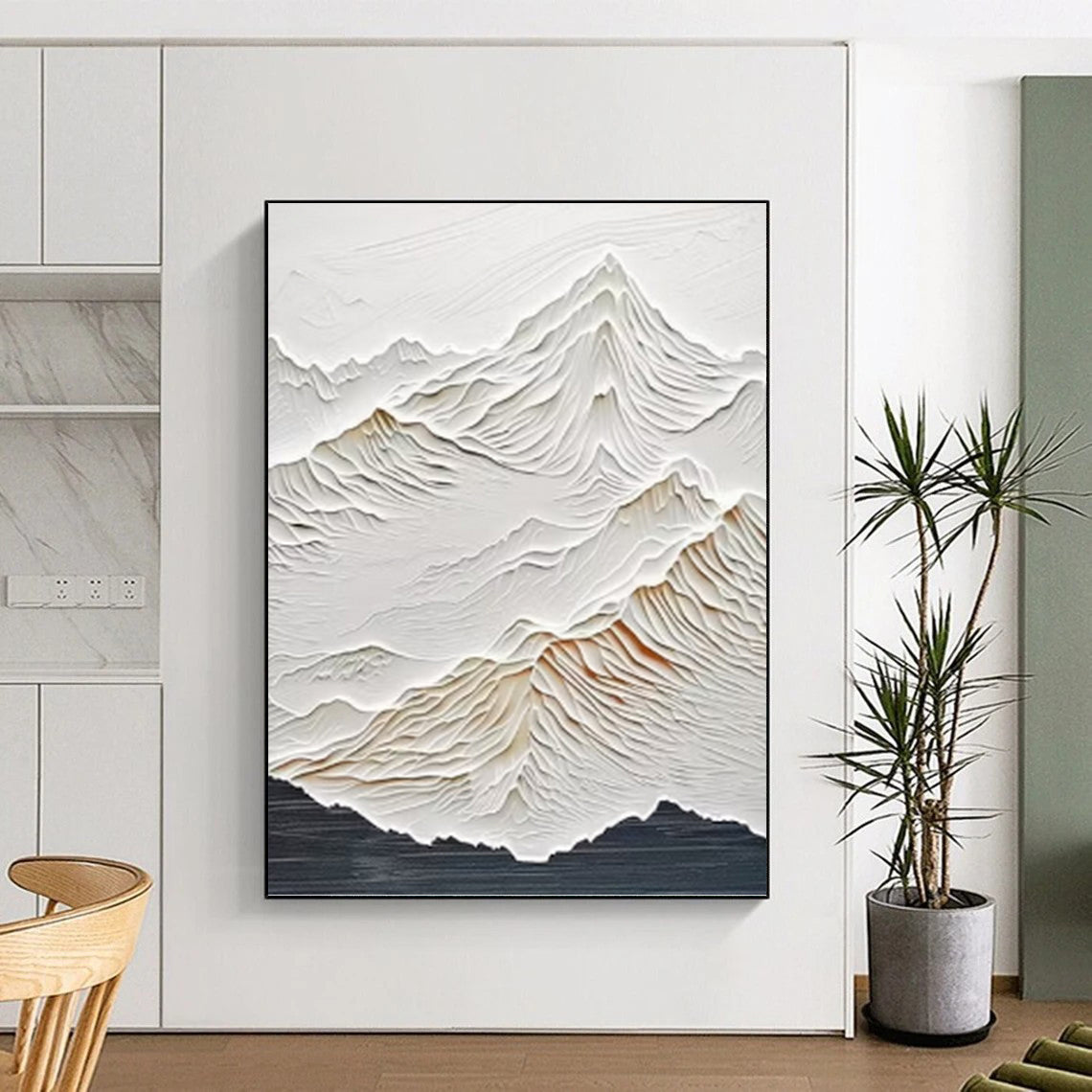 Mesmerized by snow - capped peaks, the artist used textured white layers to build a mountain range that feels almost touchable. Each ridge, each valley is carved into the paint, creating a 3D illusion that draws you in. It’s a peace - bringer in a bedroom, helping you drift off to dreamy mountain escapes, or a meditation space, where its serene form can guide your thoughts to stillness. When creating, the artist imagined standing on a mountaintop, feeling the crisp air, and tried to put that feeling into every stroke. It’s a window to a peaceful world, a reminder that even in the busyness of life, there’s a quiet mountain waiting to soothe your soul.