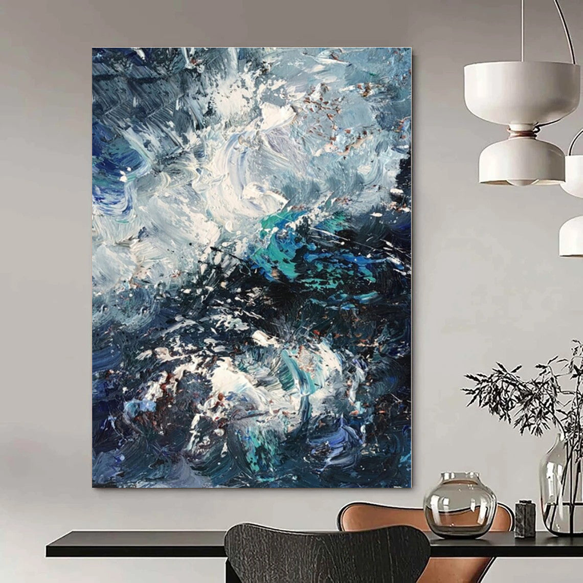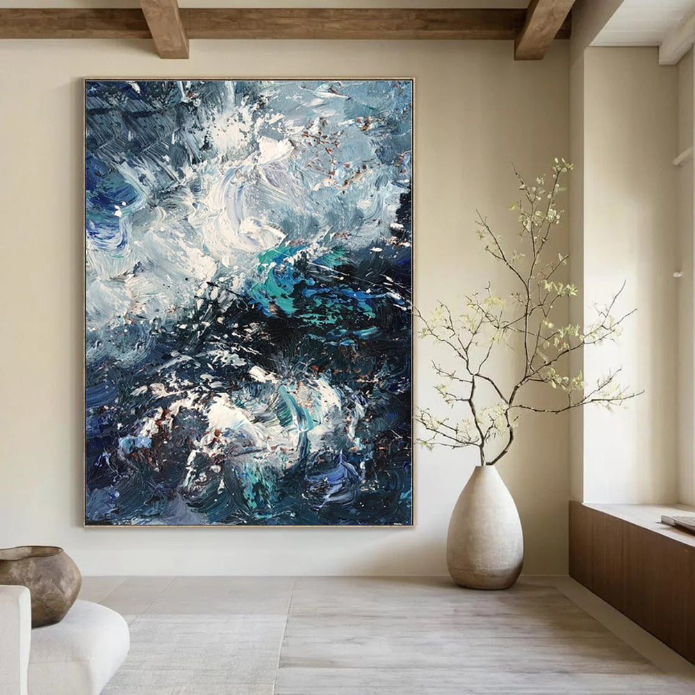 Turbulent Sea Abstract Painting, Perfect for Nautical - Themed Den & Bold Dining Room LargeART1351