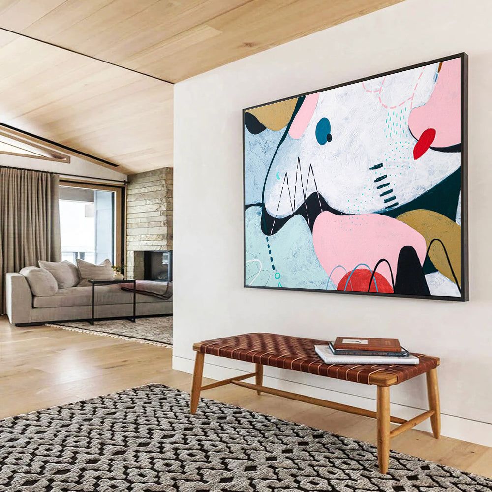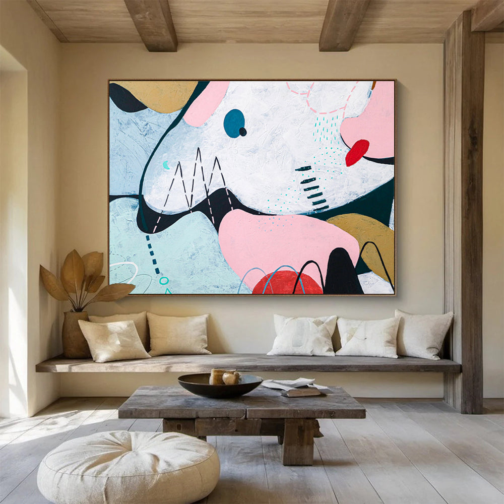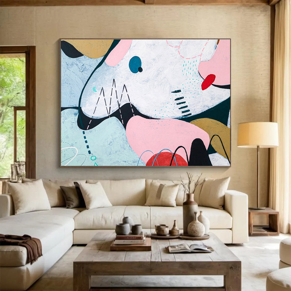 Whimsical Geometric Abstract Painting on Canvas DKH550