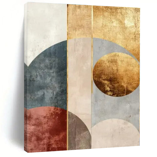 Geometric Gold & Earth - Tone Abstract Canvas Painting, Suited for Mid - Century Modern Living Room & Sophisticated Retail Boutique LargeART1246