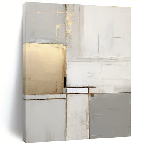 Gray & Gold Geometric Abstract Painting, Suited for Luxury Living Room & Sophisticated Office LargeART1432