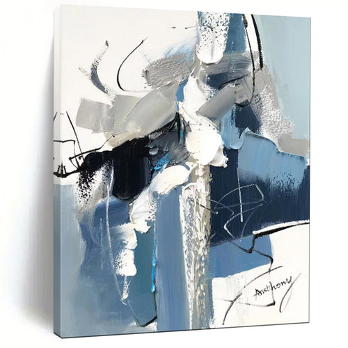 Blue & Gray Dynamic Abstract Painting, Perfect for Creative Studio & Modern Lounge LargeART2082