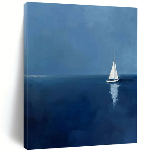 Minimalist Seascape Art, Blue - Toned Calming Painting for Coastal Bedroom & Relaxation Nook LargeART2230