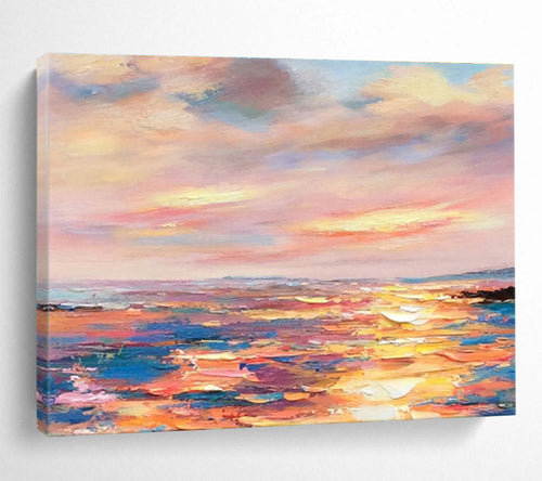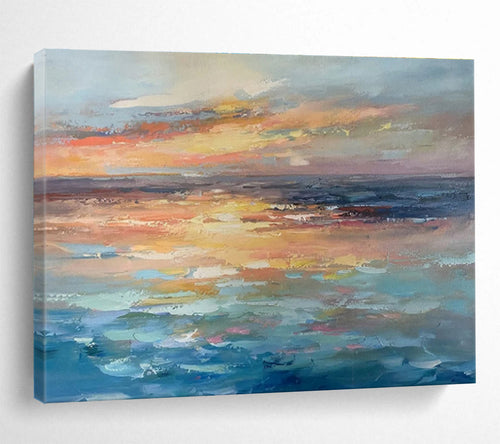 Dreamy Sunset Sea Abstract Painting for Coastal Cottage & Relaxing Balcony DKH119