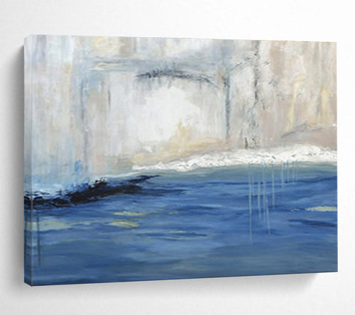 Blue - Toned Abstract Sea Painting On Canvas DKH392
