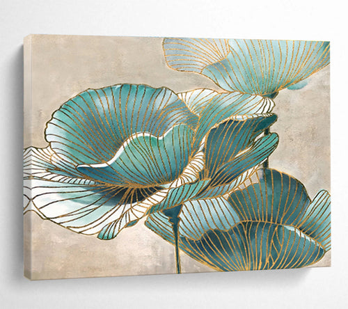 Blue And Gold Floral Abstract Painting On Canvas DKH428