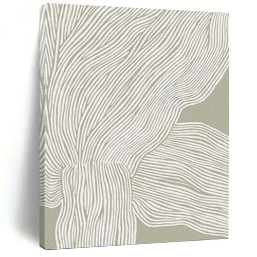 “Linear Flow in Grey” - Grey, White Abstract Line Art on Canvas DKH1119