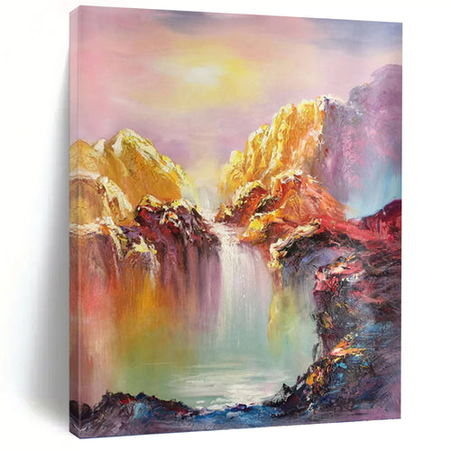 “Vibrant Waterfall Mountain Scene” - Multicolor Landscape Art on Canvas DKH1279