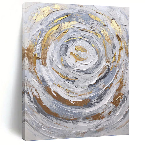 “Gilded Spiral Textured Abstract” - Grey, White, Gold Abstract Art on Canvas DKH1286