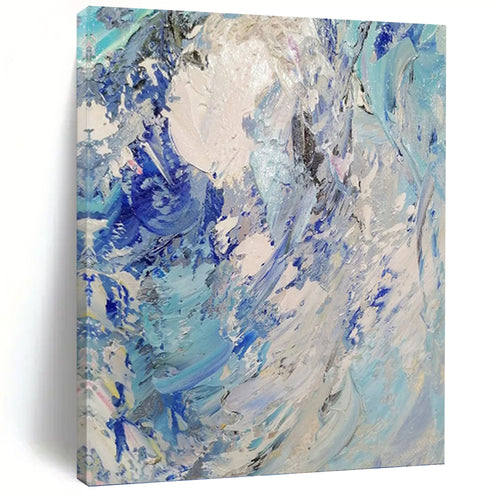 “Textured Blue and White Abstract Waves” - Blue, White, Grey Abstract Art on Canvas DKH1288