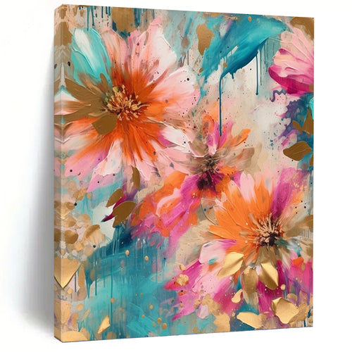 “Colorful Flat - Style Floral Field” - Modern Floral Art on Canvas DKH1595