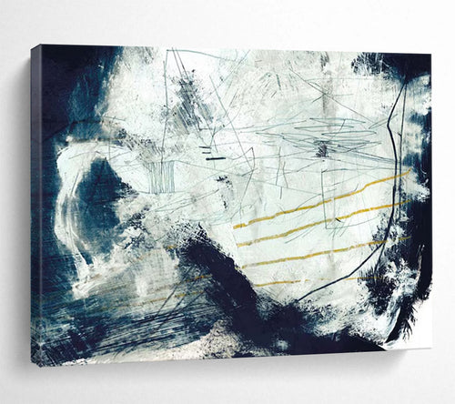 Dynamic Blue - White Abstract with Yellow Accents Acrylic painting DLZ141