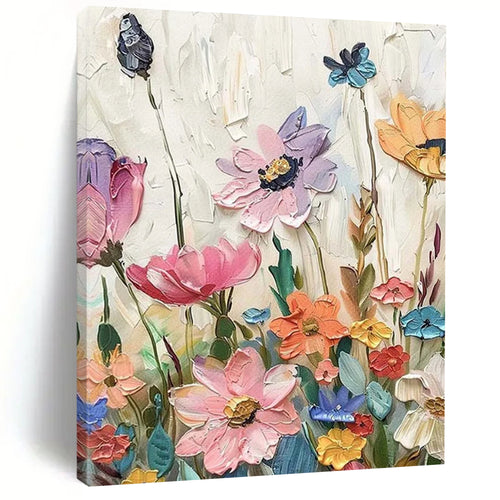 “Pastel Flower Field” – Light - Hued Flower Oil Painting with Layered Textures DTP084