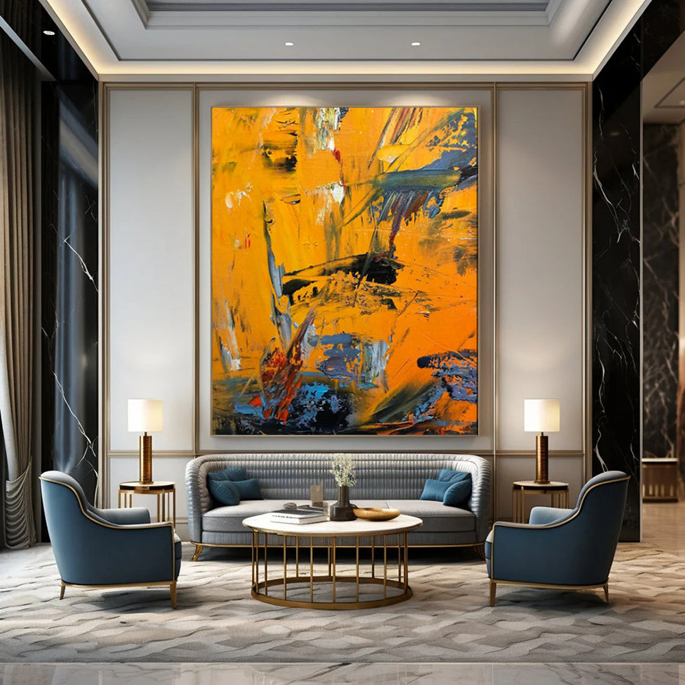 The artist was in a burst of energy, wanting to paint pure joy. They chose a fiery orange, adding splashes of blue and black to create movement. It’s about celebrating exuberance—perfect for an energetic living room to liven up gatherings or a creative studio to spark ideas. The artist’s spontaneous 创作 (spontaneous creative process) brings a rush of color, ready to electrify your space. Packaging: Each artwork is professionally rolled and secured in a durable hard-shell tube for safe transit with a 2–3 inch white border around the painting for easy stretching or framing at your local shop. Delivery Timeline: Expect your painting within 7–12 business days including 3–5 days for handcrafting by our artists and 5–7 days for worldwide delivery via UPS or FedEx with a tracking number provided immediately upon shipping.
