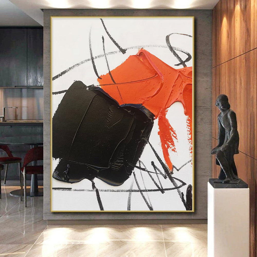Large - Scale Orange - Black Abstract Art for Industrial Loft & Bold Home Office LargeART0488