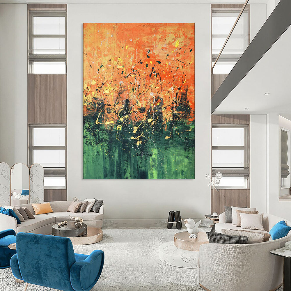 The artist loves the energy of splatter paint—how it feels wild, unplanned, full of life. One sunny day, they let loose in the studio, flinging orange, yellow, and green paint onto a canvas, watching as the colors danced and mixed. This piece is about embracing chaos, finding beauty in the messy, energetic moments. It’s perfect for an energetic home gym to pump up the vibe or a bold kitchen to add a splash of fun. The artist’s carefree, paint - flinging session is in every splatter, ready to bring a burst of energy to your space. Packaging: Each artwork is professionally rolled and secured in a durable hard-shell tube for safe transit with a 2–3 inch white border around the painting for easy stretching or framing at your local shop. Delivery Timeline: Expect your painting within 7–12 business days including 3–5 days for handcrafting by our artists and 5–7 days for worldwide delivery via UPS or FedEx with a tracking number provided immediately upon shipping.