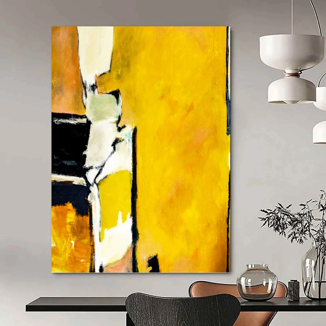 The artist aimed to capture energy with bold yellows and contrasting colors. Thick brushstrokes create a dynamic feel. This piece is great for a home gym, boosting motivation, or a creative studio, inspiring artistry. Let its vibrant energy liven up your space.