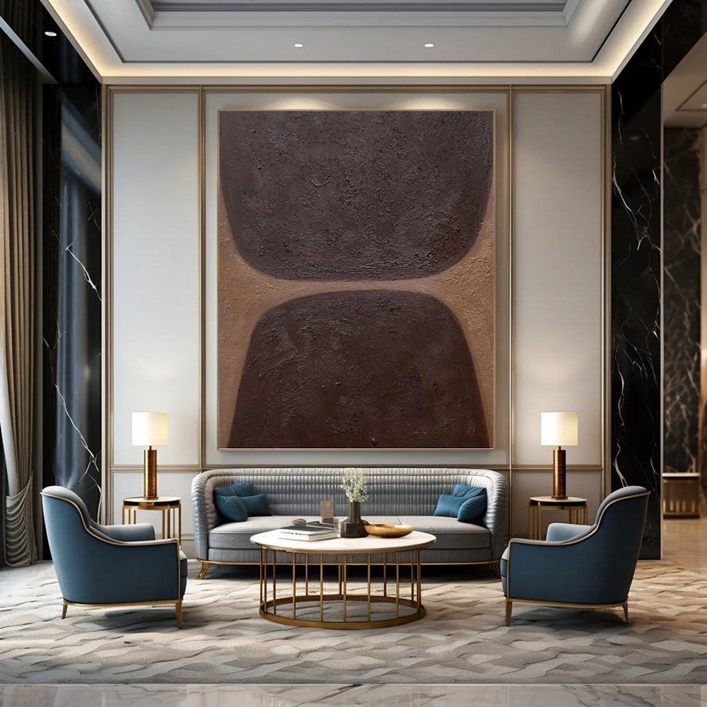 “Dual Dark Textured Shapes” - Brown Abstract Art on Canvas DKH1169