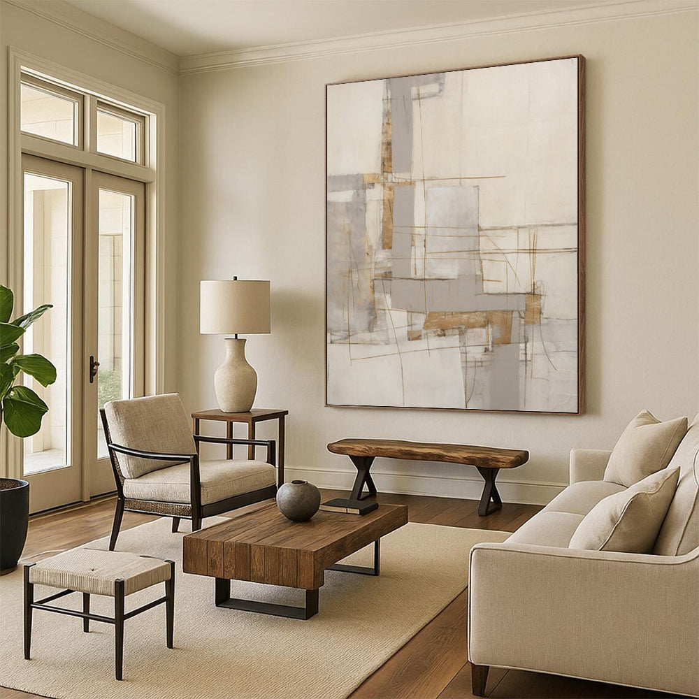 Motivated by the precision of architectural lines and the softness of neutral tones, the artist used thin, intersecting lines to create a sense of depth and movement. Each line was carefully placed to guide the viewer’s eye. Great for a home office to inspire structured thinking or a living room to add a touch of modern elegance. Hang this linear abstract and let your space feel the rhythm of architectural design—own a piece of guided movement.