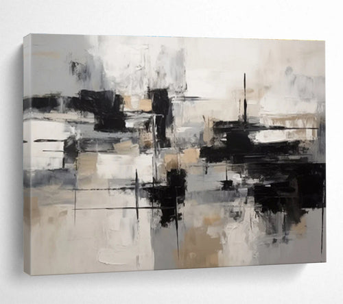 Monochromatic Geometric Abstract Painting On Canvas for Modern Office & Art - Loving Library DKH335
