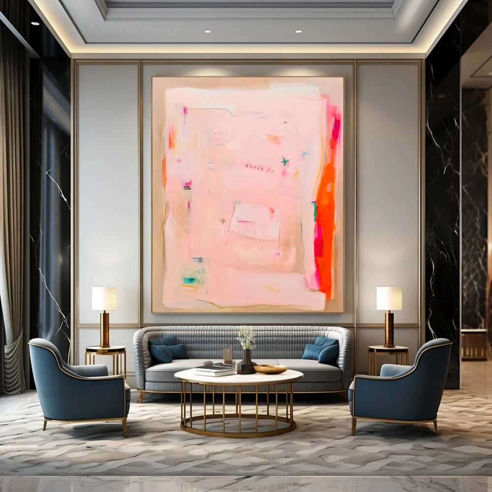 The artist believes in the power of simplicity and the soothing nature of soft pink. They wanted to create a piece that offers a moment of calm in a busy world. Starting with a pale pink canvas, they added subtle, almost - imperceptible marks—faint lines, tiny shapes, and gentle color variations. Each mark was placed with intention, like a quiet breath in a meditative practice. The result is a painting that feels both empty and full, a space for the mind to rest. This minimalist work is perfect for a calming bedroom to promote relaxation or a minimalist office to bring a sense of peace amidst work. It’s a journey into stillness, where the soft pink hues and delicate details invite you to slow down and appreciate the beauty of simplicity, born from the artist’s desire to create a haven of tranquility. Packaging: Each artwork is professionally rolled and secured in a durable hard-shell tube for safe transit with a 2–3 inch white border around the painting for easy stretching or framing at your local shop. Delivery Timeline: Expect your painting within 7–12 business days including 3–5 days for handcrafting by our artists and 5–7 days for worldwide delivery via UPS or FedEx with a tracking number provided immediately upon shipping.