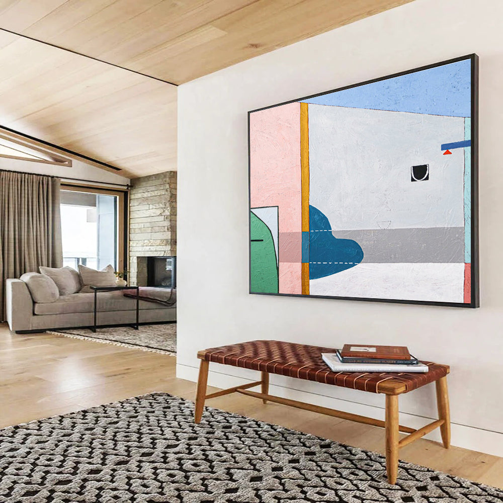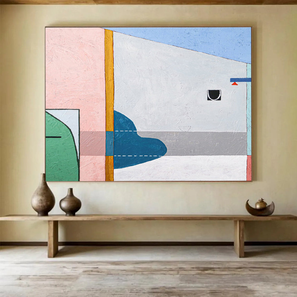 The artist was walking through a pink - hued sunset in a modern city park, where the geometric shapes of playground equipment and park benches were bathed in the warm, rosy light. Inspired by this scene, they used a palette of soft pinks, grays, and blues to create a geometric abstract composition. The acrylic layers build up to create a textured, almost tactile surface, capturing the feeling of that sunset moment. This piece is ideal for a feminine - styled boutique’s dressing area, where it can add a touch of artistic elegance and create a memorable shopping experience, or a cozy bedroom with a modern - romantic vibe, enhancing the space’s charm. Let it bring the magic of a pink sunset and geometric beauty into your home.