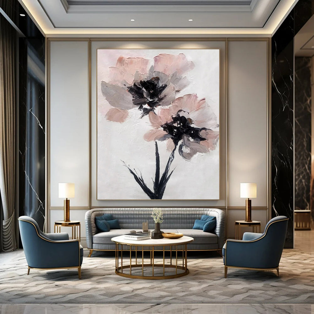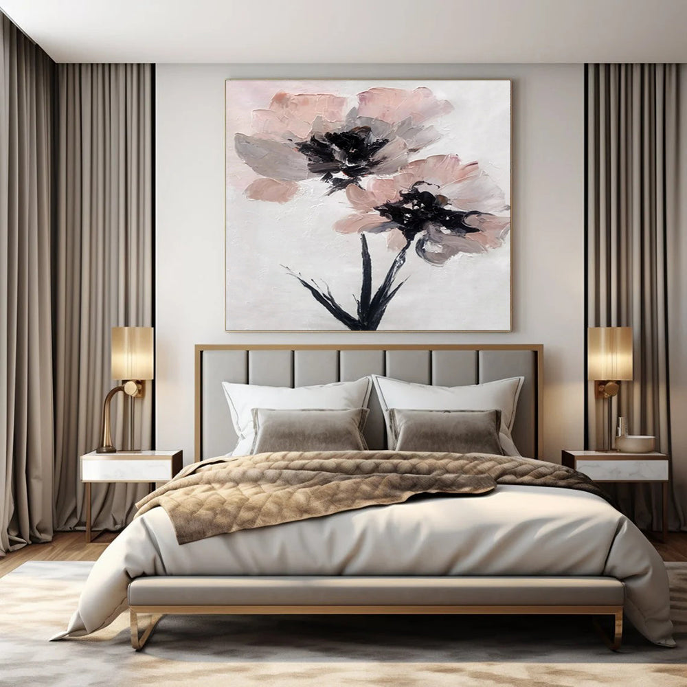 Pink & Gray Floral Abstract Painting, Perfect for Feminine Bedroom & Chic Boutique LargeART1428