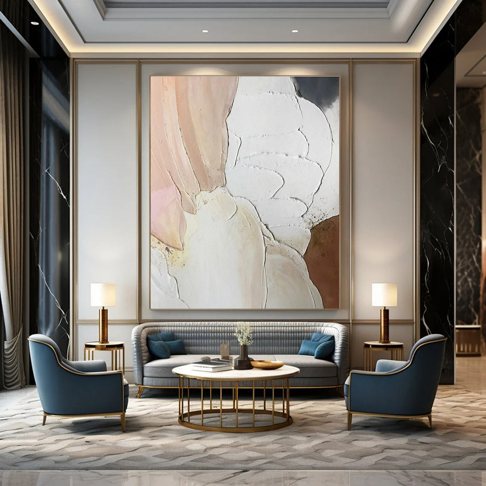 The artist was drawn to the softness of pastel colors and the idea of creating something tactile. They used a palette knife to build up layers of paint, giving the canvas a 3D effect that you want to reach out and touch. Starting with a white base, they added pink and beige tones, letting the colors blend in a dreamy way. It took hours of careful layering to get the right texture. Hang it in a feminine boudoir for a romantic touch or a chic café to add an artistic vibe. It’s like a cloud made solid, a piece that brings a gentle, dreamy feeling to any space. Packaging: Each artwork is professionally rolled and secured in a durable hard-shell tube for safe transit with a 2–3 inch white border around the painting for easy stretching or framing at your local shop. Delivery Timeline: Expect your painting within 7–12 business days including 3–5 days for handcrafting by our artists and 5–7 days for worldwide delivery via UPS or FedEx with a tracking number provided immediately upon shipping.