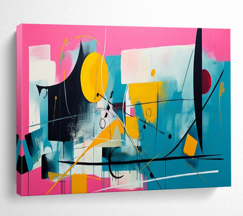 Hand - painted Pink Background Abstract Shapes Acrylic Art for Vibrant Café Interiors LargeART1718