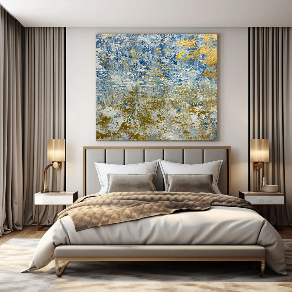 The artist was inspired by the way sunlight dances on ocean waves. They layered shades of blue, adding thick, textured gold strokes to mimic the sun’s glimmer. Working with a palette knife, they built up the surface, creating a tactile landscape that invites touch (though we don’t recommend it!). It’s perfect for a coastal living room, evoking seaside serenity, or an elegant office, adding a touch of refined luxury. Each gold fleck was placed to catch the light just so, a labor - of - love to bring the ocean’s magic indoors. Hang it and let your space shimmer with coastal charm. Packaging: Each artwork is professionally rolled and secured in a durable hard-shell tube for safe transit with a 2–3 inch white border around the painting for easy stretching or framing at your local shop. Delivery Timeline: Expect your painting within 7–12 business days including 3–5 days for handcrafting by our artists and 5–7 days for worldwide delivery via UPS or FedEx with a tracking number provided immediately upon shipping.