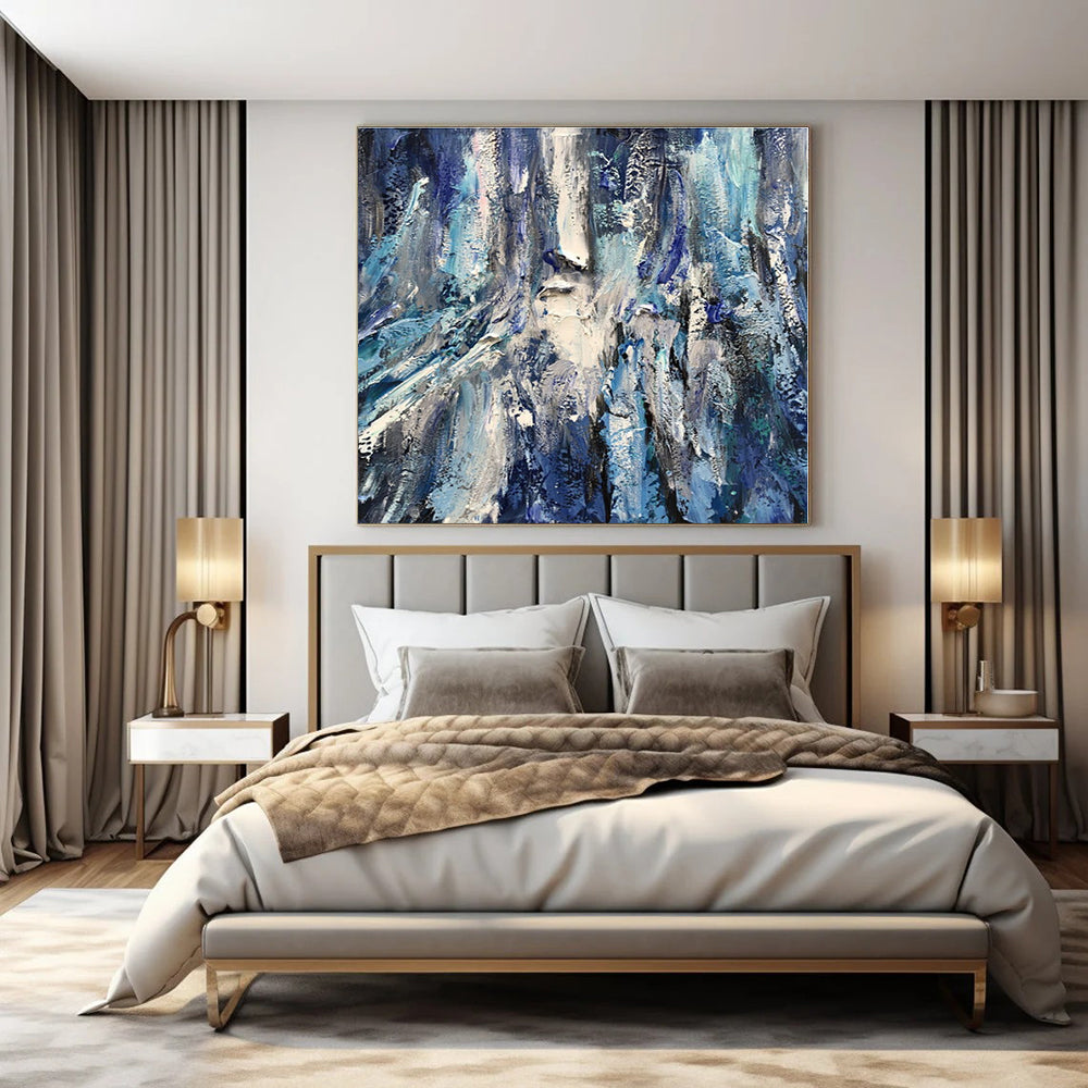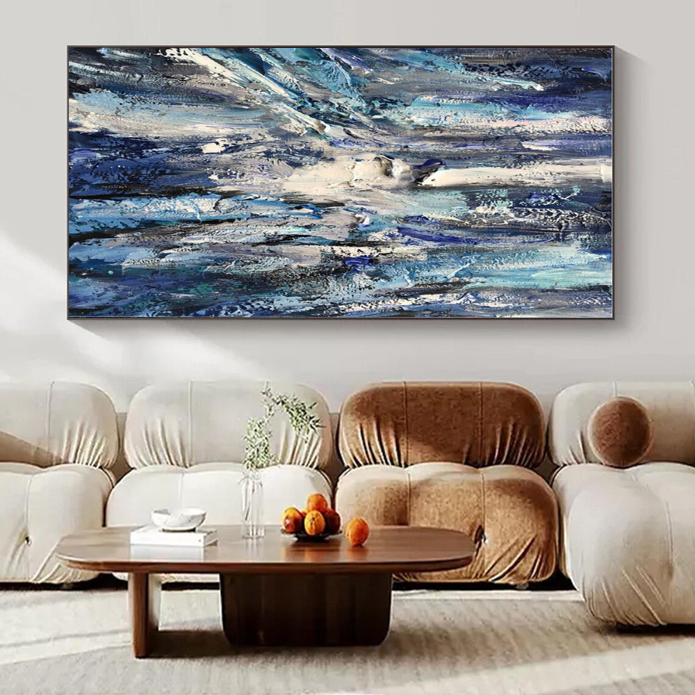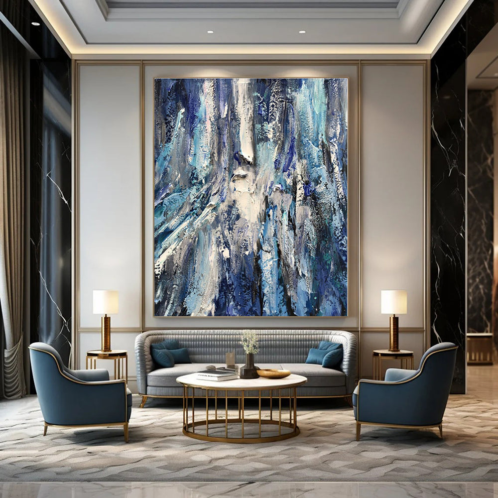 Blue & White Textured Abstract Painting, Ideal for Coastal Home Office & Relaxing Bathroom LargeART1350