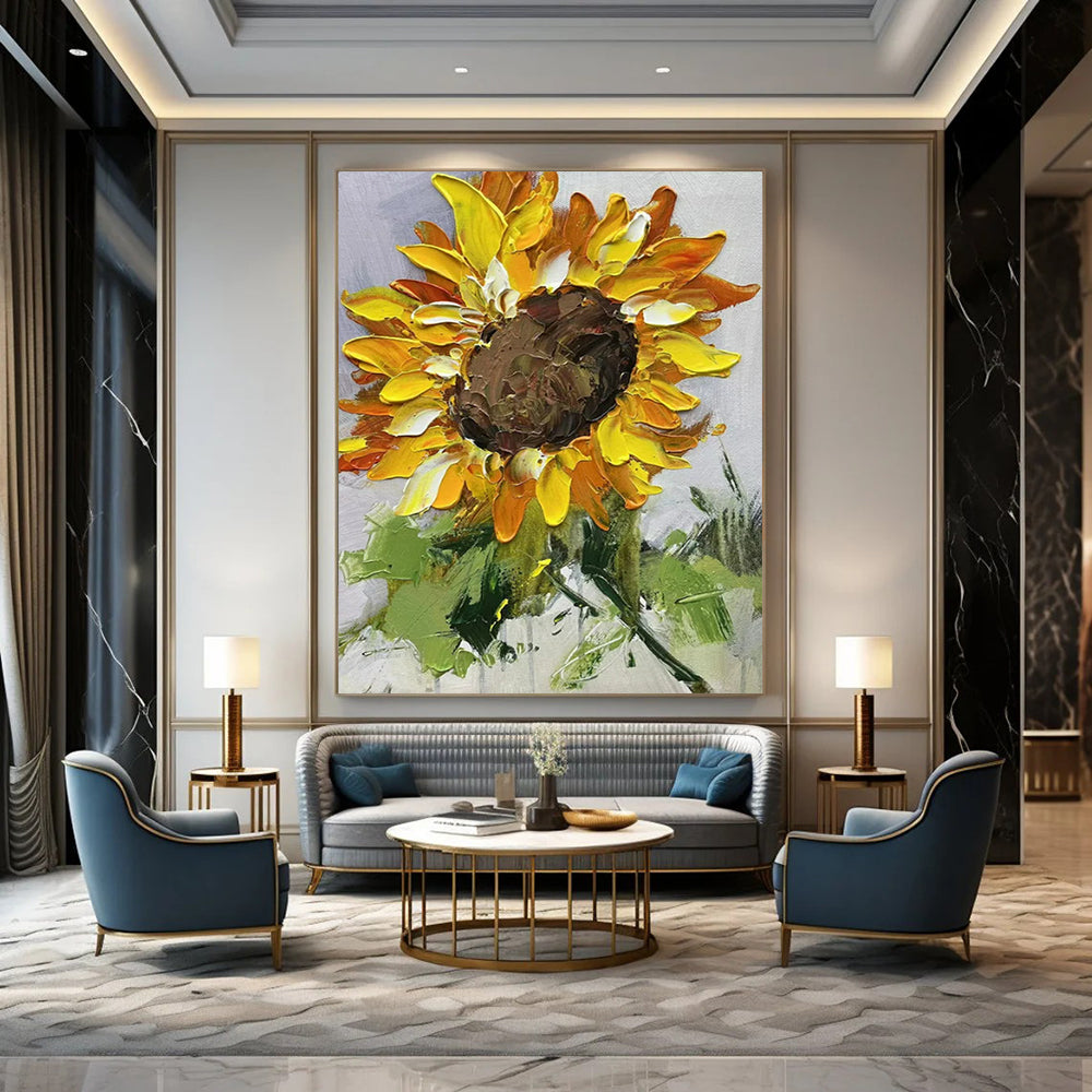 The artist, loving sunflowers’ vibrancy, used impasto technique to build texture. Each petal was a thick stroke, capturing the flower’s bold energy. They aimed to bring the garden indoors, making it ideal for a country kitchen’s warmth or a garden - themed dining room’s natural beauty. Packaging: Each artwork is professionally rolled and secured in a durable hard-shell tube for safe transit with a 2–3 inch white border around the painting for easy stretching or framing at your local shop. Delivery Timeline: Expect your painting within 7–12 business days including 3–5 days for handcrafting by our artists and 5–7 days for worldwide delivery via UPS or FedEx with a tracking number provided immediately upon shipping.